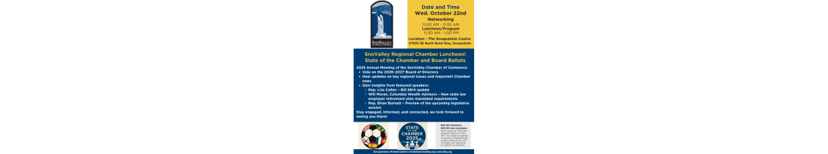 Join us at The Snoqualmie Casino for the 2025 Annual Meeting of the SnoValley Chamber of Commerce, a special luncheon bringing together business and community leaders from across the Valley.