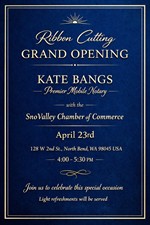 I’m excited to invite you to my Grand Ribbon Cutting with the SnoValley Chamber of Commerce.