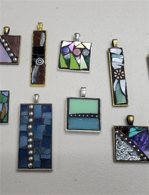 What You'll Learn: In this beginner-friendly class, explore the art of creating unique mosaic pendants using glass, beads, and Apoxie Sculpt. Students will also learn how to safely handle and cut tesserae with wheeled nippers while experimenting with design techniques to bring their creative visions to life!