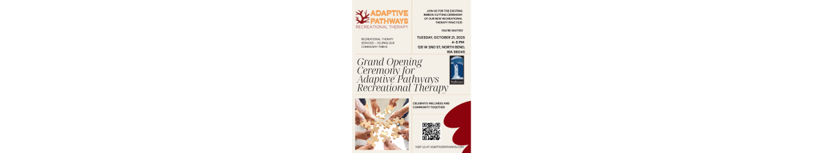 Join us for the exciting ribbon cutting celebration of Adaptive Pathways Recreational Therapy—a new practice dedicated to helping our community thrive. Come celebrate wellness and community together as we mark this milestone for local recreational therapy services.