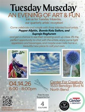 Connect with your community and your creativity, while enjoying light snacks and beverages and an opportunity to see amazing work up close, chat with the artist, and maybe take home a beautiful piece of artwork!
